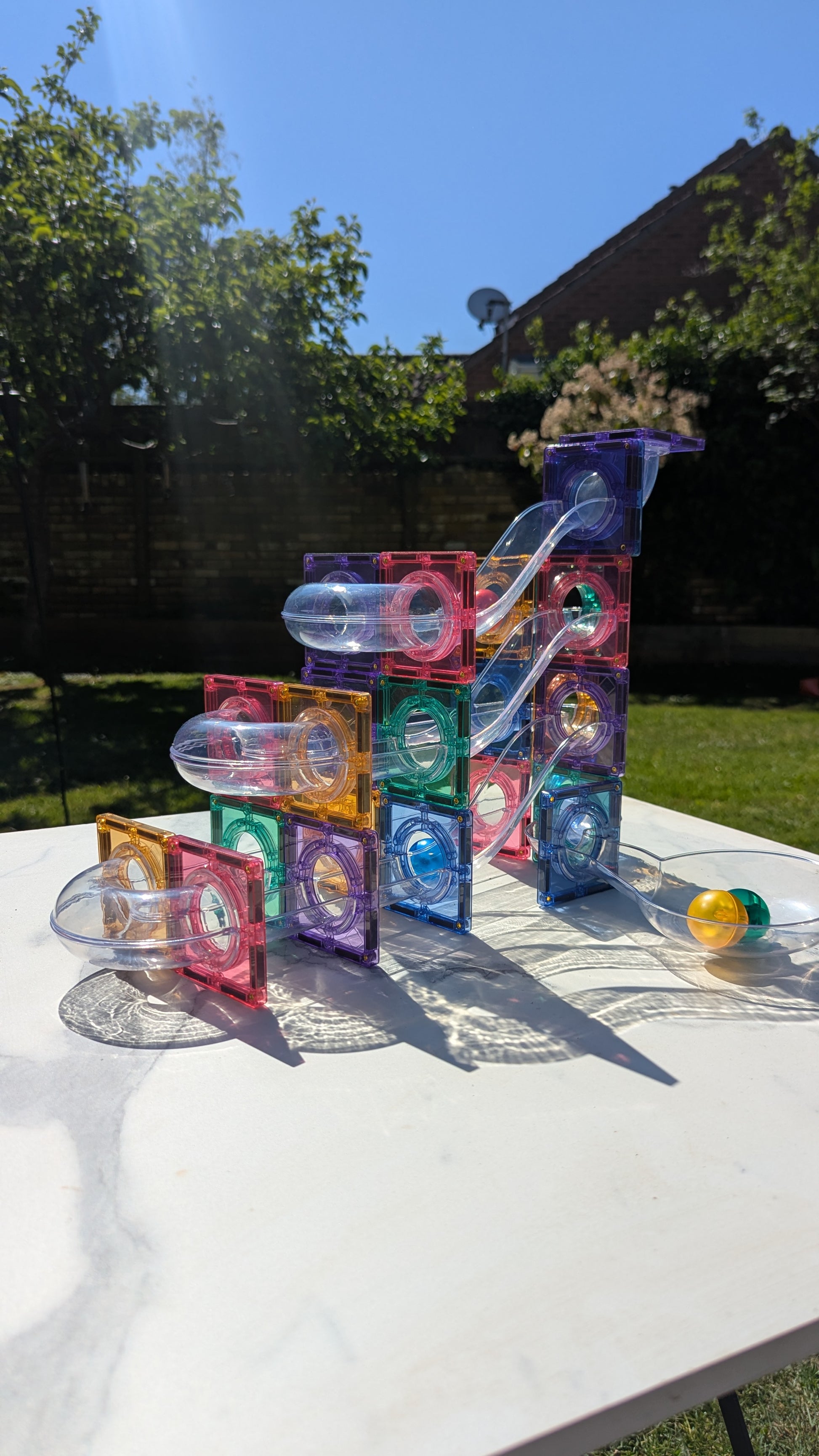 This Cleverclixx ball run in pastel colours contains 110 pieces. With this set, you can immediately make a great start to building with our magnetic tiles. Magnets have something magical about them and appeal to the imagination of children anyway. Your child’s creativity & fantasy are completely free to come up with fun constructions and ideas to play with your favourite Cleverclixx set. All the sets are compatible with each other so you can always expand.