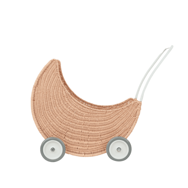 With its soft pink hue and timeless rattan design, the Moon Strolley is perfect for pretend picnics, starlit journeys, or simply rolling through the house on a fun-filled afternoon. This versatile companion brings imagination to life, offering a stylish and playful touch to every moment.