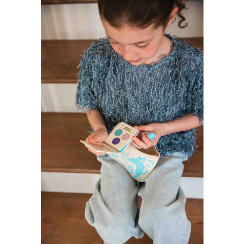 The printed organic cotton pouch includes the lovely 3 colour eyeshadow palette in the winter colourway, and luscious glitter lip gloss. Namaki's premium certified organic cosmetics are 100% natural, hypoallegenic, dermalogically tested and safe for children to experiment with the creative fun of makeup.